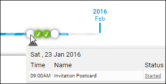 - When you hover over a circle, the start date and status of the activity are displayed: