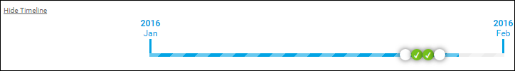 - The circles on the timeline represent activities. A green circle with a check mark indicates an activity is complete: