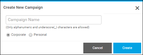 - In the Create New Campaign window, enter a unique name (without any spaces) for the campaign, for example, JanOffers or FebSale.