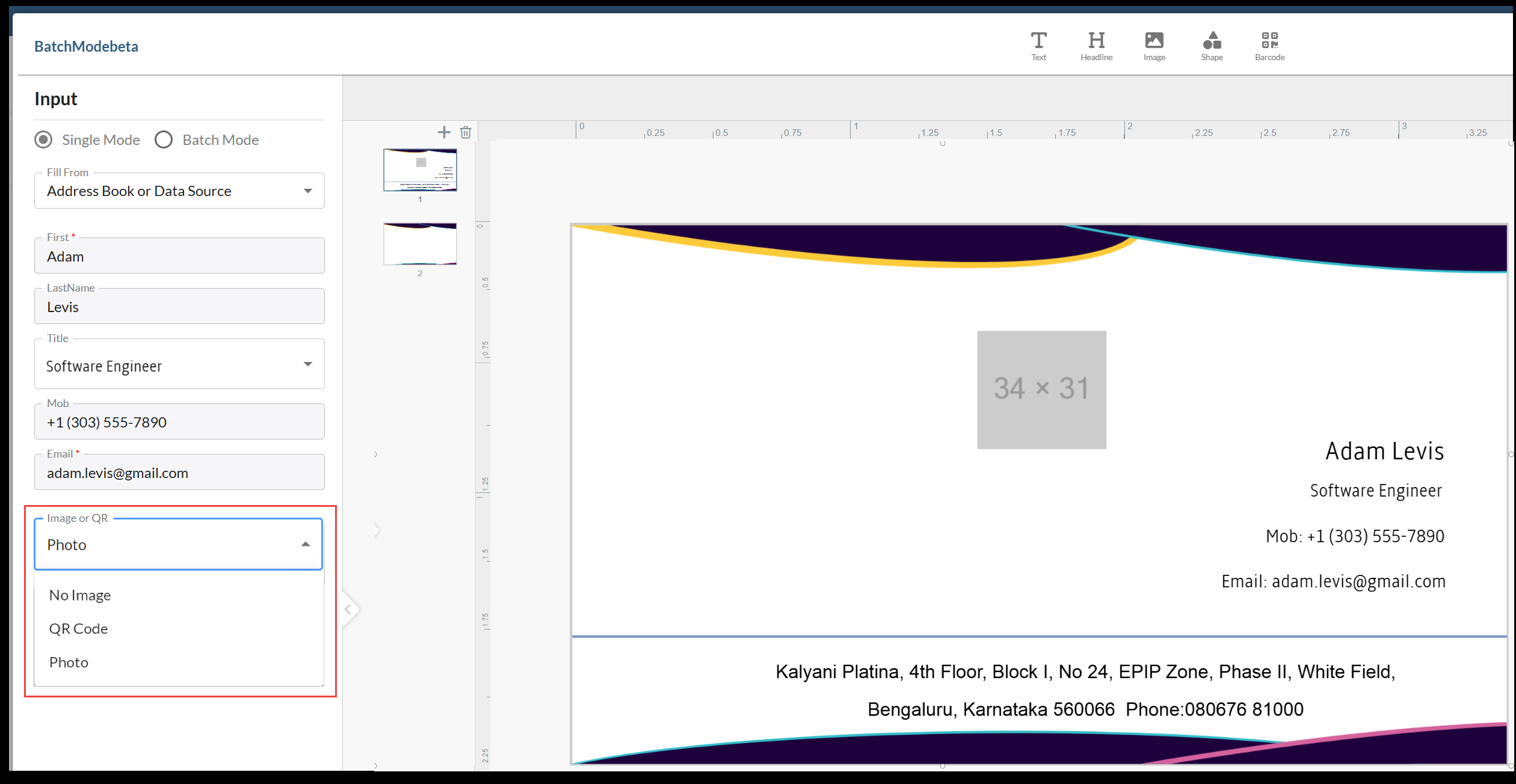 SmartCanvas products can be personalized in either Single Mode or Batch Mode. Both options may be available depending on the product.