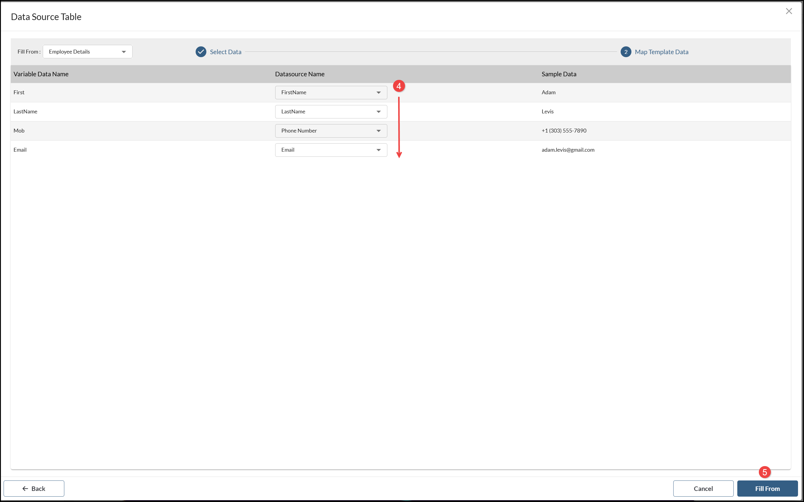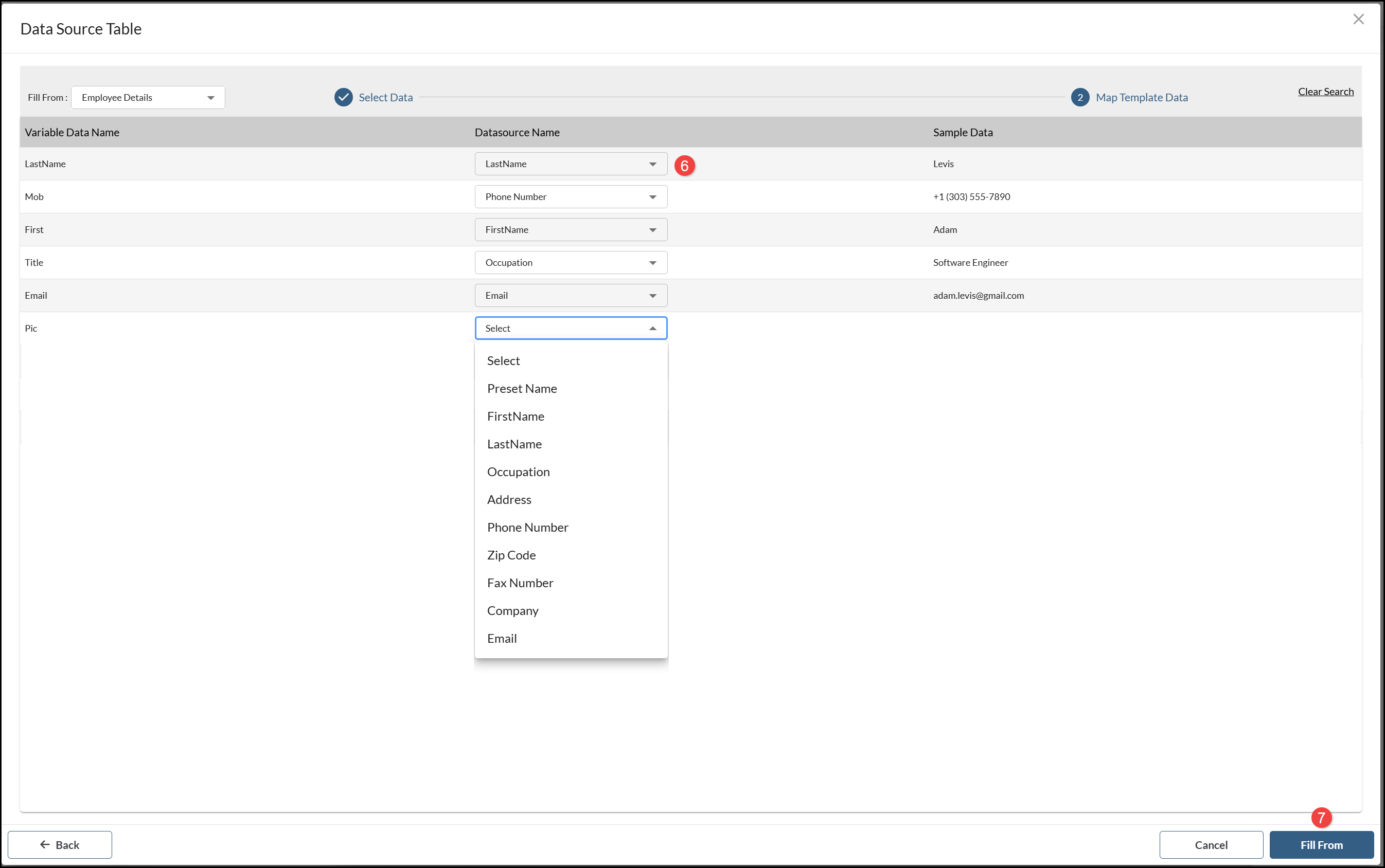 - Select a pre-loaded Data Source from the Fill From menu.