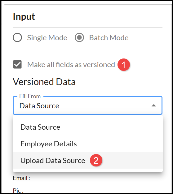 Products may also include an option to upload a Data Source. Select Batch Mode and: