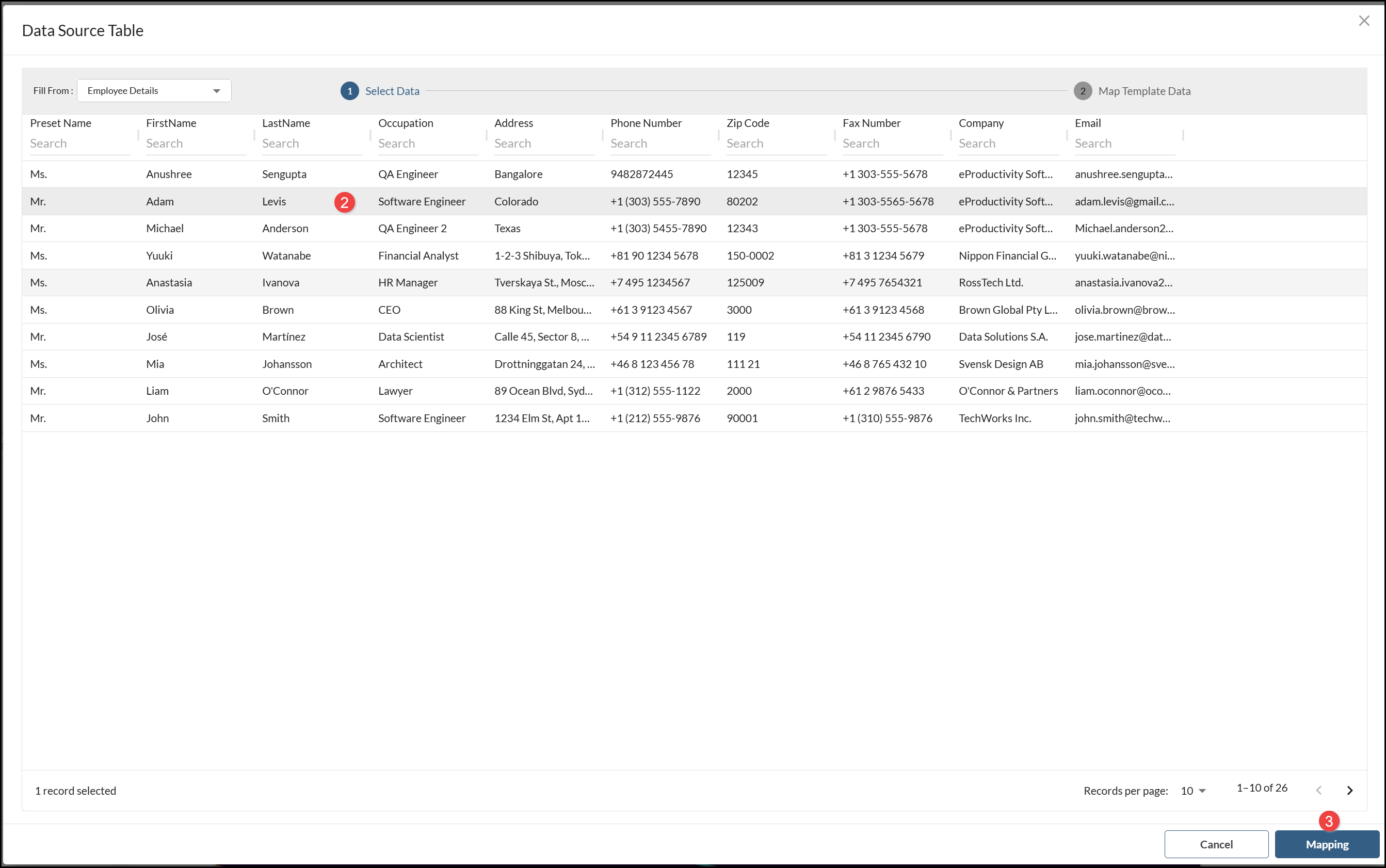 - When you have selected the records you want to include, choose Mapping.